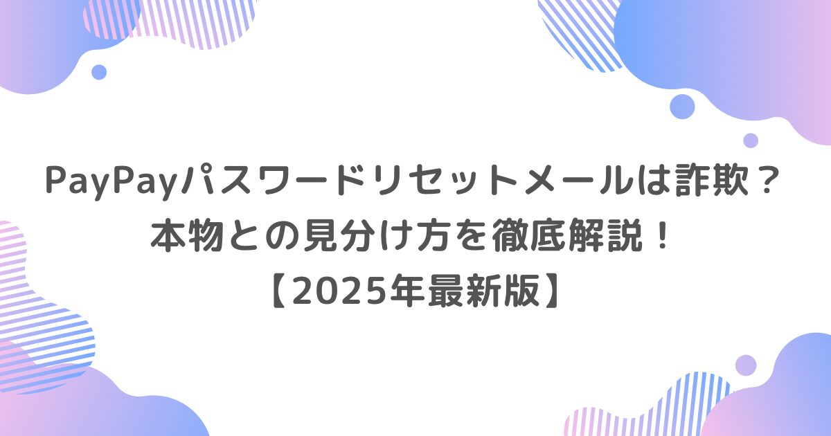 PayPayパスワードリセットメールは詐欺?本物との見分け方を徹底解説!【2025年最新版】