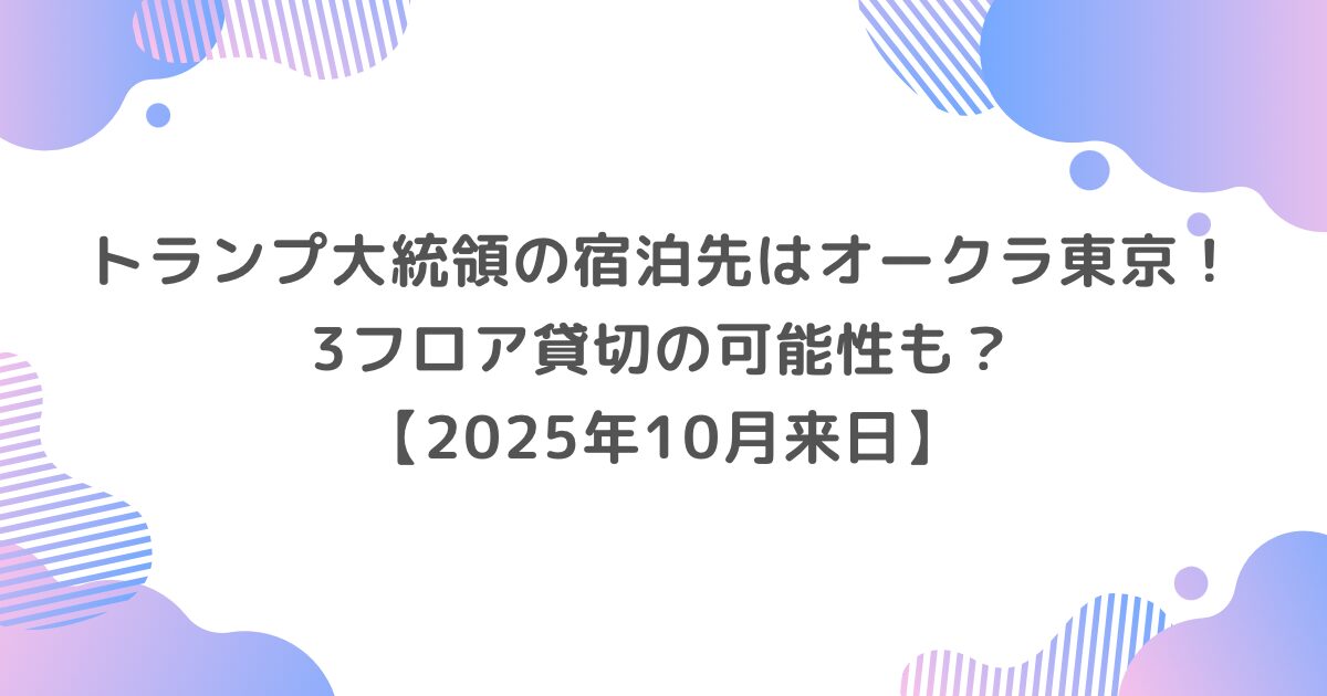 トランプ大統領の宿泊先はどこ?10月27〜29日の来日にあわせ、ホテルオークラ東京が最有力との声が急増。3フロア貸切の可能性や警備強化の理由をわかりやすく解説します。 -