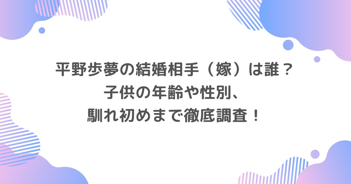 平野歩夢の結婚相手(嫁)は誰?子供の年齢や性別、馴れ初めまで徹底調査!