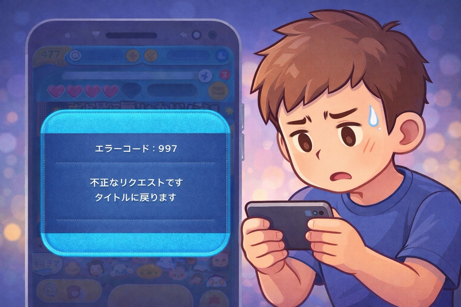ツムツムの「流れ星に願いをかけよう」で発生しているエラー997について整理すると、