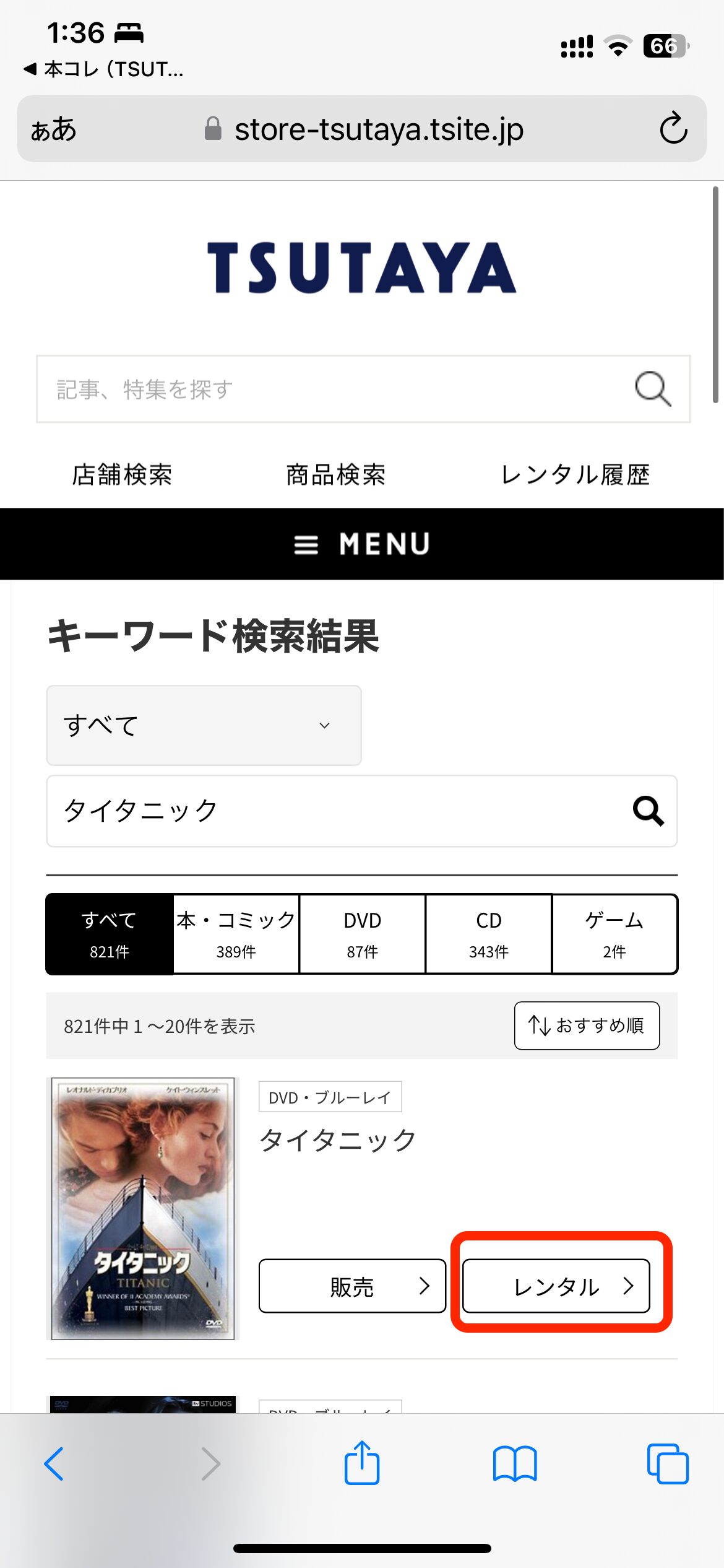 ブラウザ(TSUTAYA online)へ遷移して確認する方法